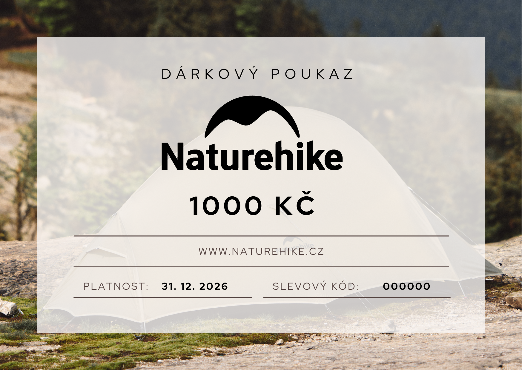 Poukaz je platný do 31. 12. 2026 a dá se využít na vše z https://www.naturehike.cz