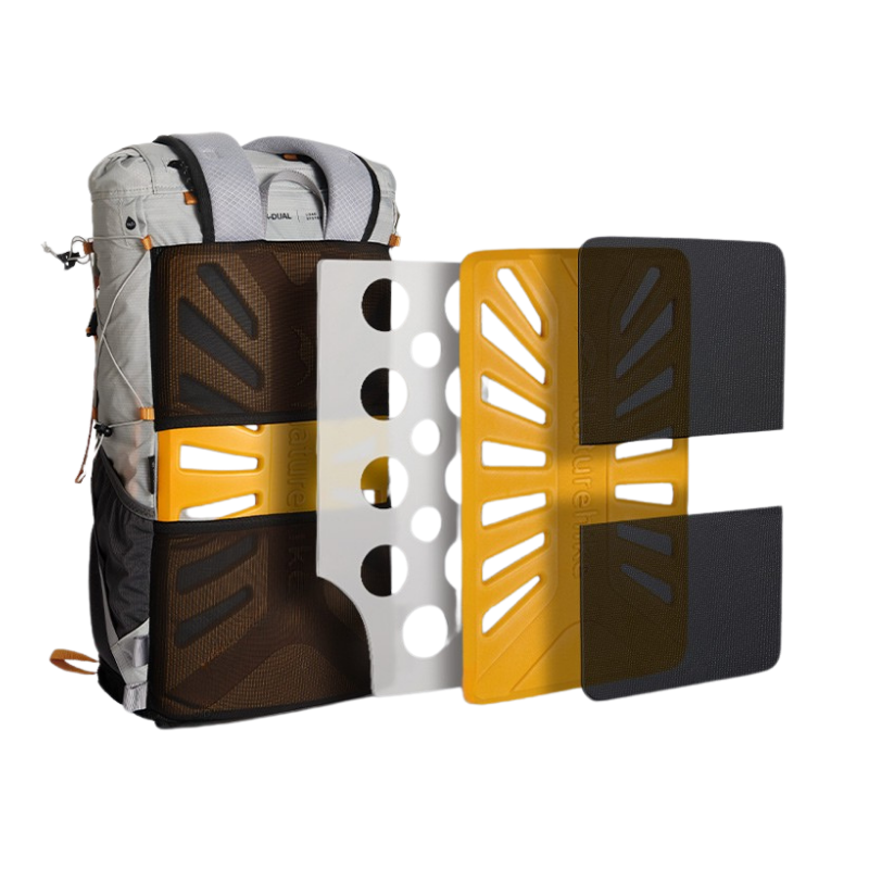 Zádový systém se skládá ze dvou samostatných částí, které můžete vyjmout bez zásahu do konstrukce batohu.