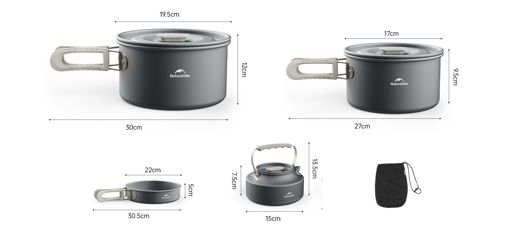 Naturehike hliníková sada nádobí pro 4-6 osob var. 1. - 1186g