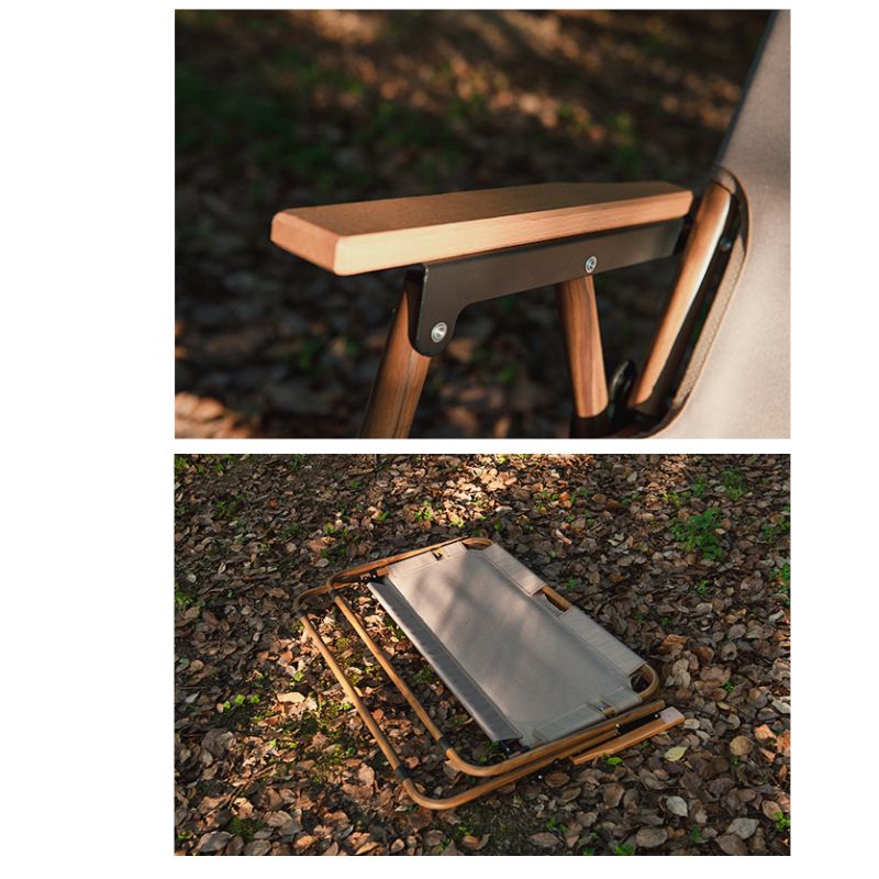 Konstrukce lavičky je zhotovena ze slitiny hliníkové oceli s povrchovou úpravou v imitaci světlého dřeva. Díky tomu je křeslo lehké, snadno přenosné a jednoduché na manipulaci.