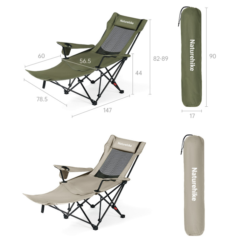 Naturehike kempingové polohovací křeslo s podnožkou - béžové