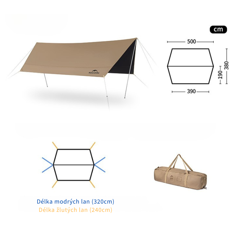 Naturehike multifunkční přístřešek - TARP vel. L včetně tyčí - 4,2 kg