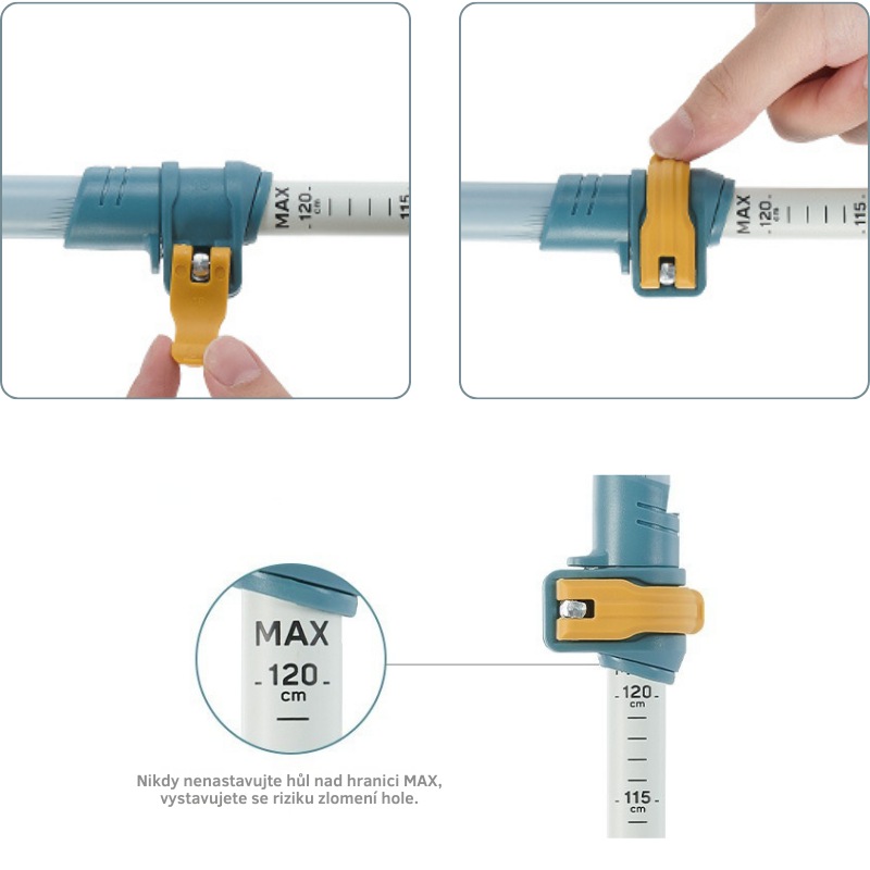 Na těle hole je také přesná stupnice, která pomáhá nastavit správnou výšku podle postavy.