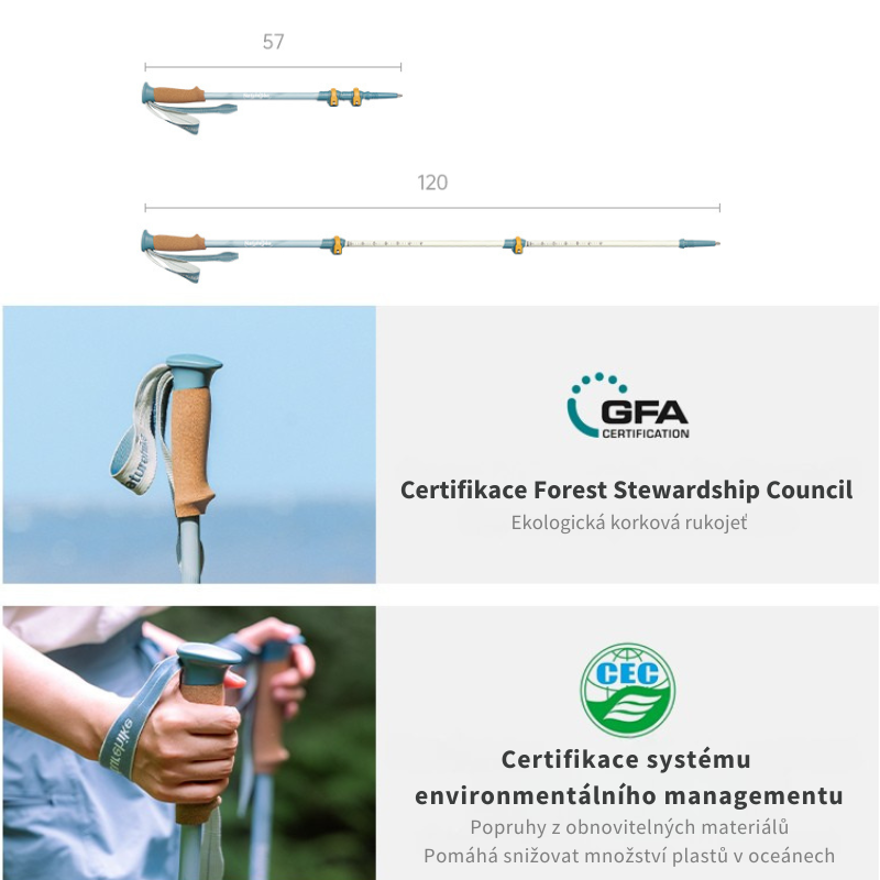 Naturehike NatureSea teleskopická treková hůl 214 g - světle modráSkladem590 Kč/ ks488 Kč bez DPH