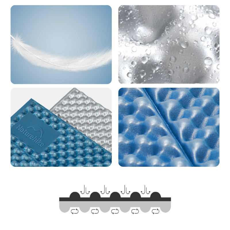 Speciální odrazová plocha pomáhá lépe udržet teplo a chránit před chladem od země.