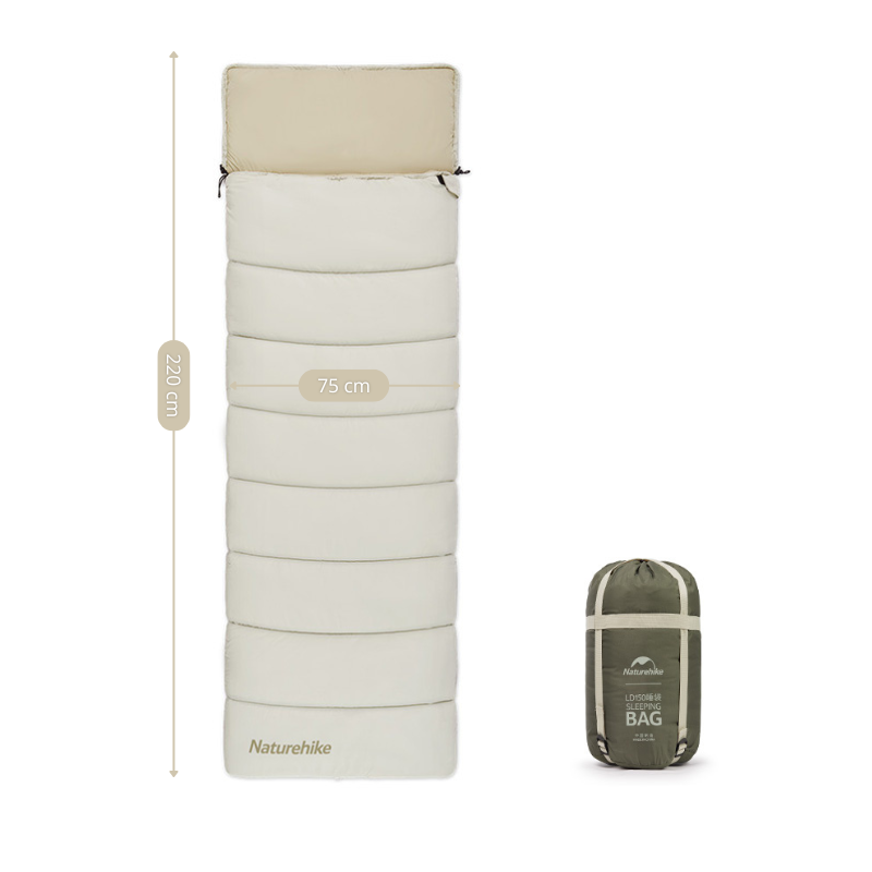 Naturehike pratelný spacák LD250 s kapucí 1,6kg - krémový