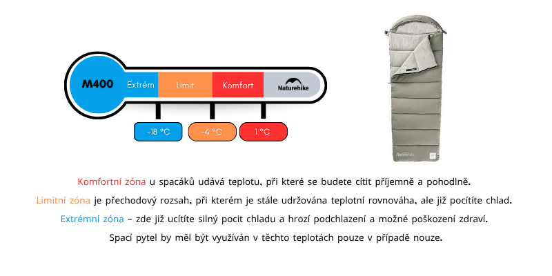 Kempingový spací pytel Naturehike ze série M s plněním 400g/m2 vás udrží v teple na jaře v létě i na podzim.