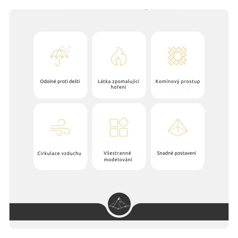 Stan je vyroben z inovativní samozhášecí tkaniny, která v případě kontaktu s jiskrou zpomaluje šíření ohně a zvyšuje bezpečnost při kempování.