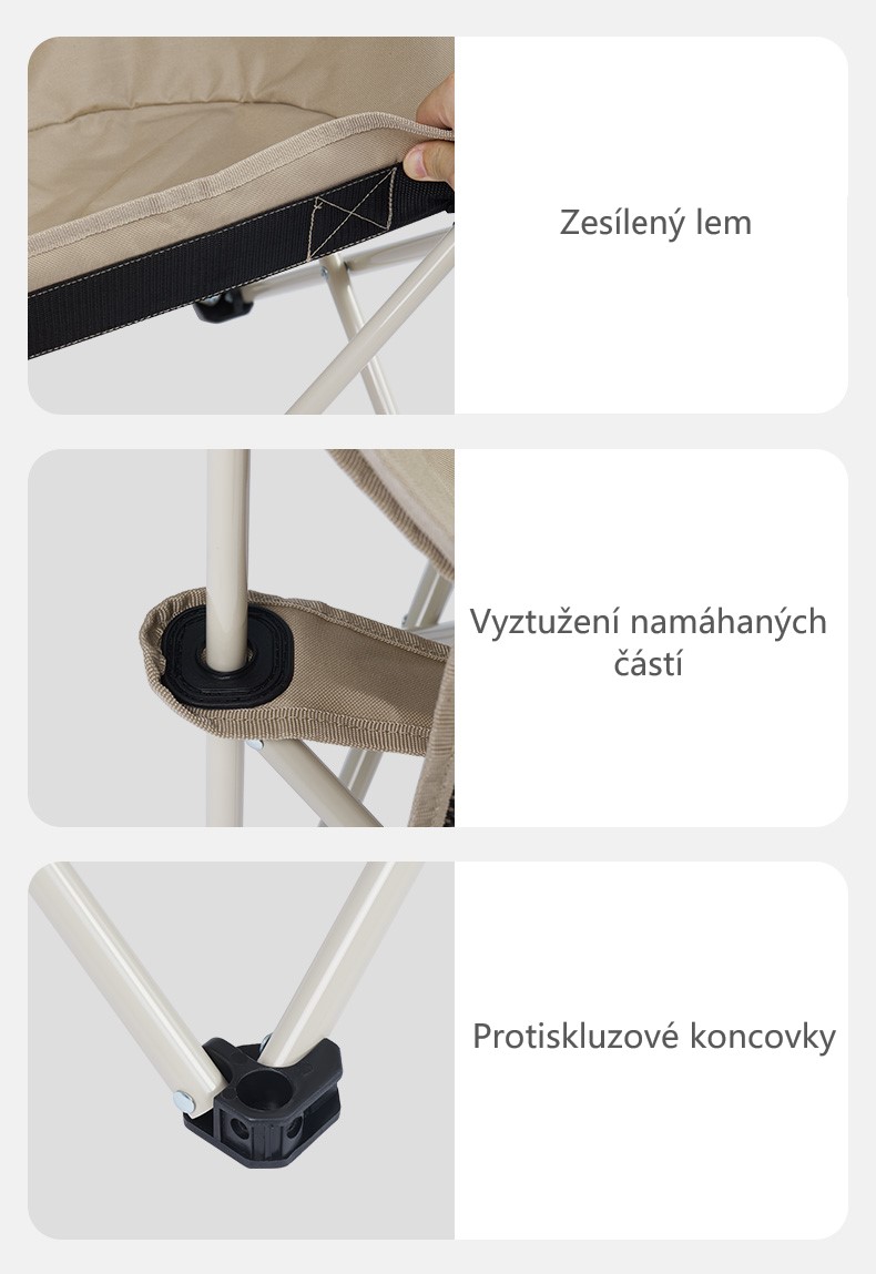 Univerzální skládací křeslo s područkami se stabilním křížení tyčí do X.