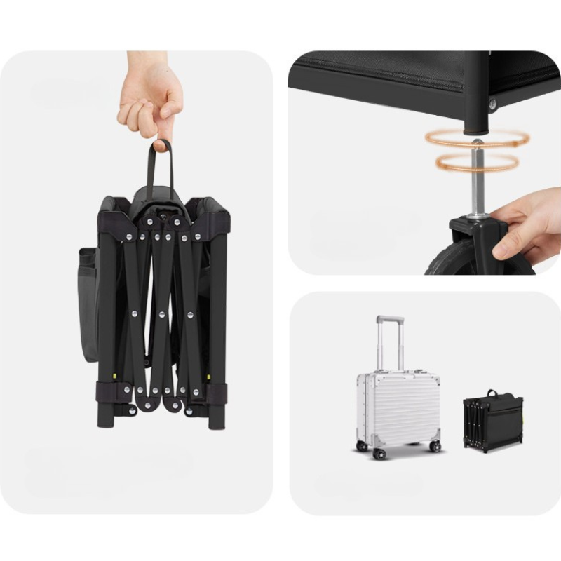Tento skládací vozík na kolečkáchnabízí odnímatelná, přední 360° otočná kolečka pro snadný pohyb ve všech směrech,