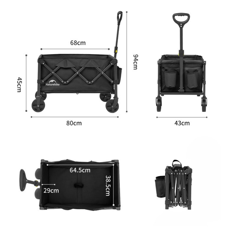 Naturehike skládací přepravní vozík na kolečkách Smart 6 kg - černý