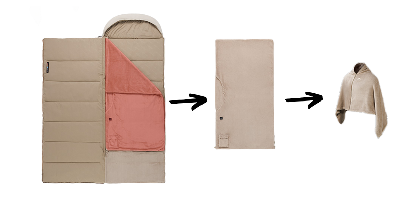 Dekový spací pytel s vyhřívanou flísovou vložkou, kterou můžete použit samostatně jako poncho.