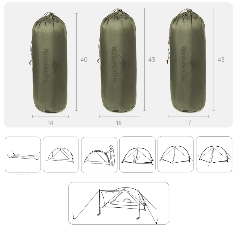 - Naturehike ultralehký stan Mongar 2 série Pro 20D 1956g - olivový