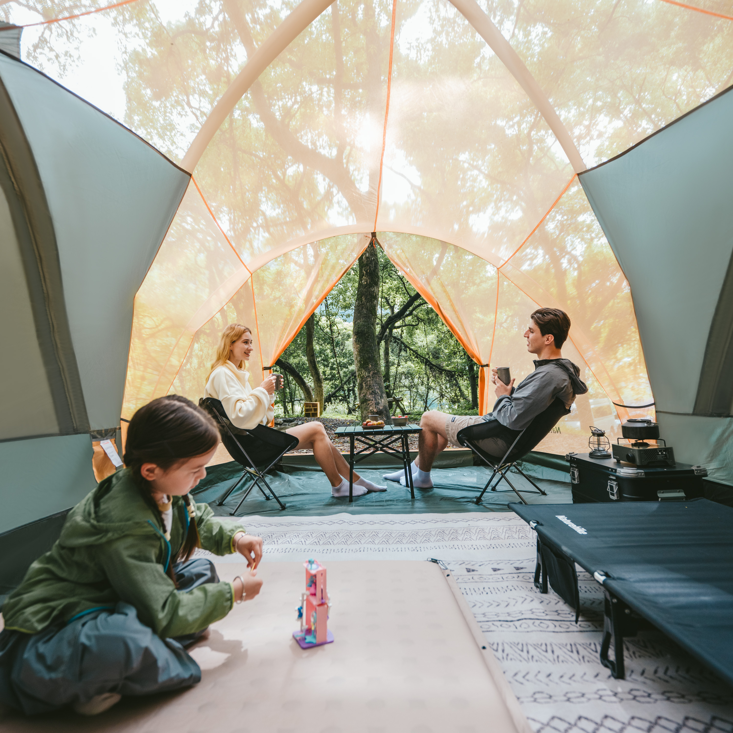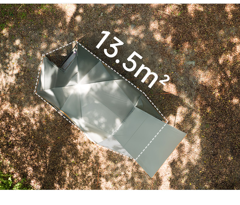 Tento prostorný stan pro kempování o ploše 13,5 m² je ideální volbou pro rodinné dovolené i skupinové výlety.
