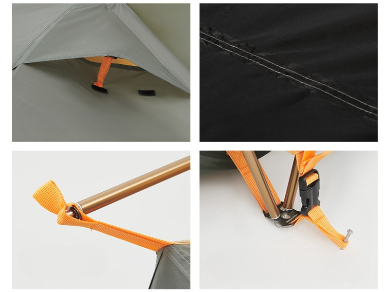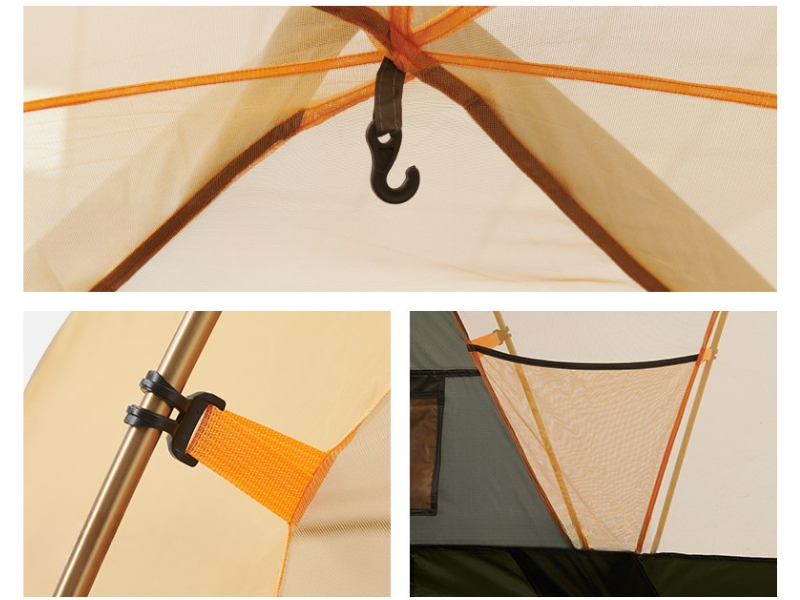 Praktické vybavení: háček na zavěšení světla, síťované kapsy na drobnosti