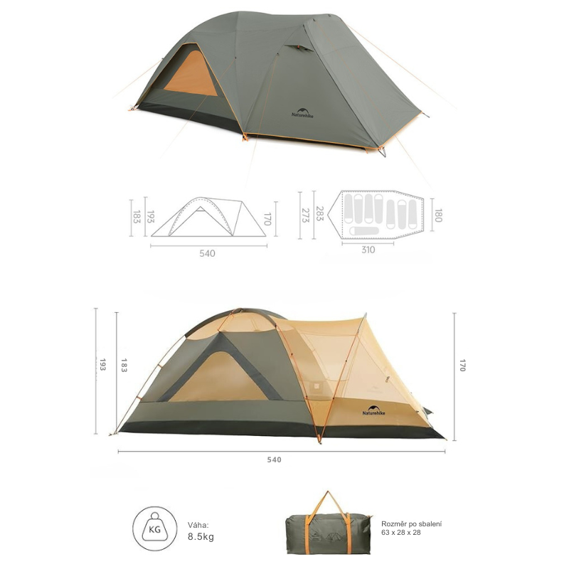 Naturehike velký rodinný stan Kota 8,5 kg - šedozelenýSkladem8 490 Kč/ ks7 017 Kč bez DPH