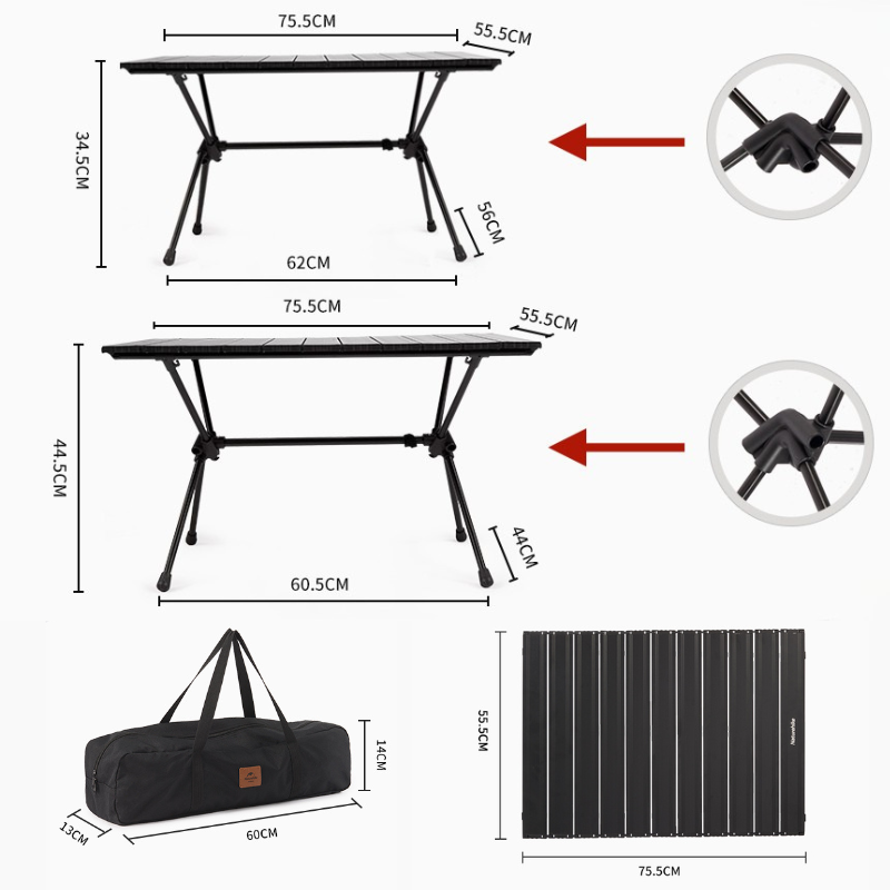 Naturehike výškově nastavitelný hliníkový stolek FT11 2700g - černý