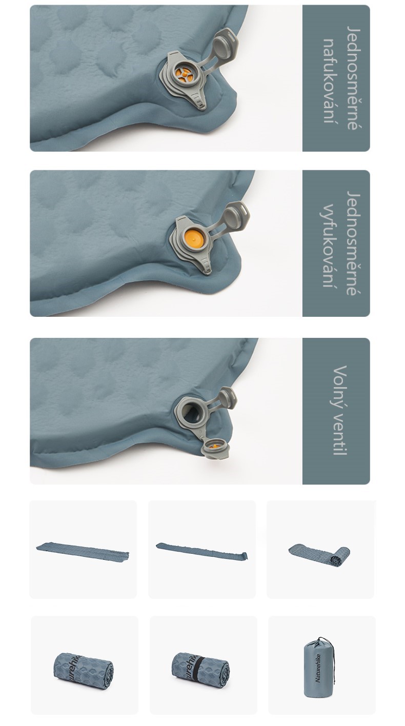 - Naturehike Yugu rozšířená samonafukovací karimatka - obdélník 740g - světle modrá
